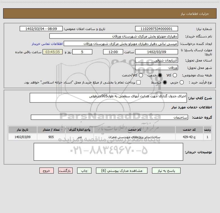 شرح کلی نیاز: اجرای جدول گذاری جهت هدایت آبهای سطحی به طول905مترطولی