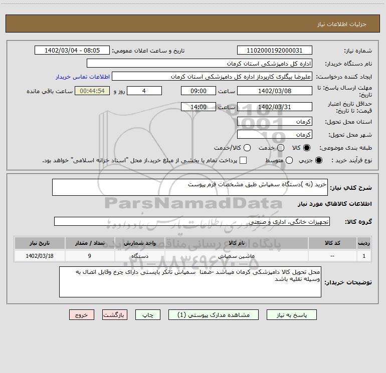 نام دستگاه خریدار:اداره کل دامپزشکی استان کرمان