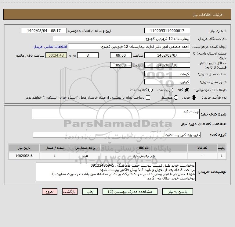 نام دستگاه خریدار:بیمارستان 12 فروردین کهنوج