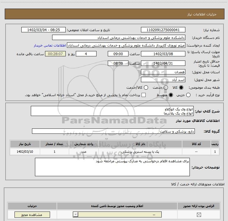 نام دستگاه خریدار:دانشکده علوم پزشکی و خدمات بهداشتی درمانی اسداباد