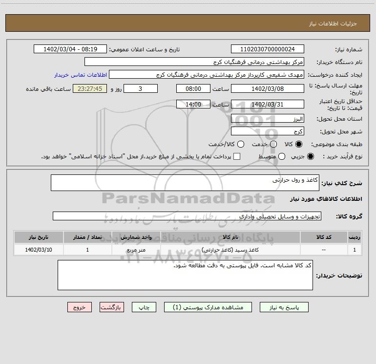 شرح کلی نیاز: کاغذ و رول حرارتی