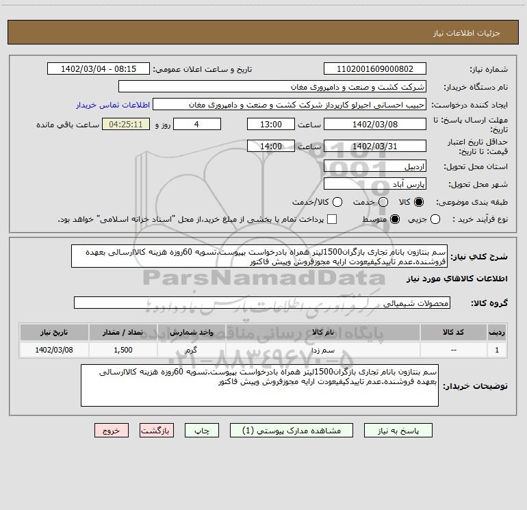 نام دستگاه خریدار:شرکت کشت و صنعت و دامپروری مغان