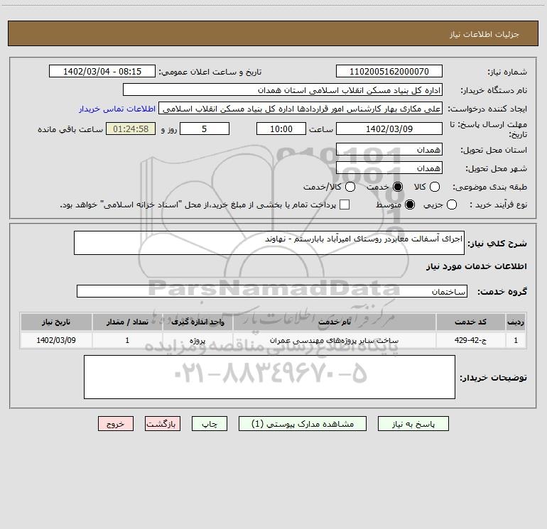 شرح کلی نیاز: اجرای آسفالت معابردر روستای امیرآباد بابارستم - نهاوند