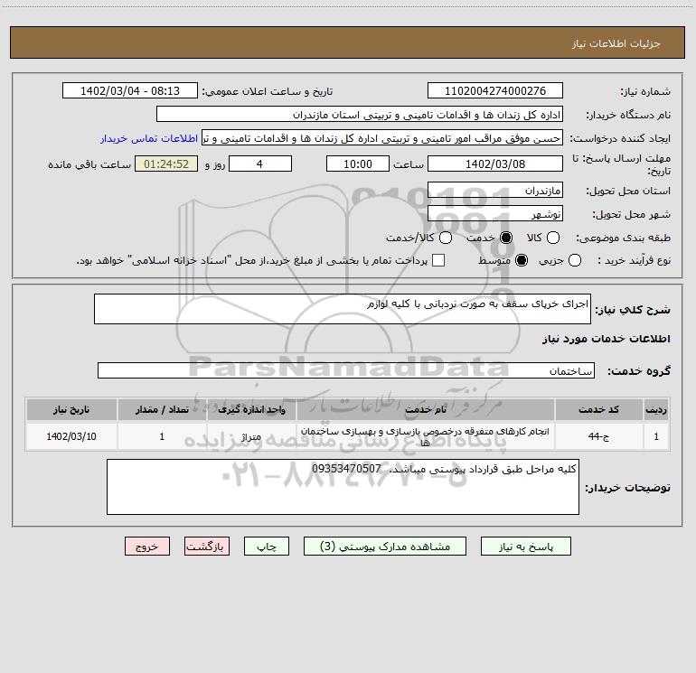 نام دستگاه خریدار:اداره کل زندان ها و اقدامات تامینی و تربیتی استان مازندران
