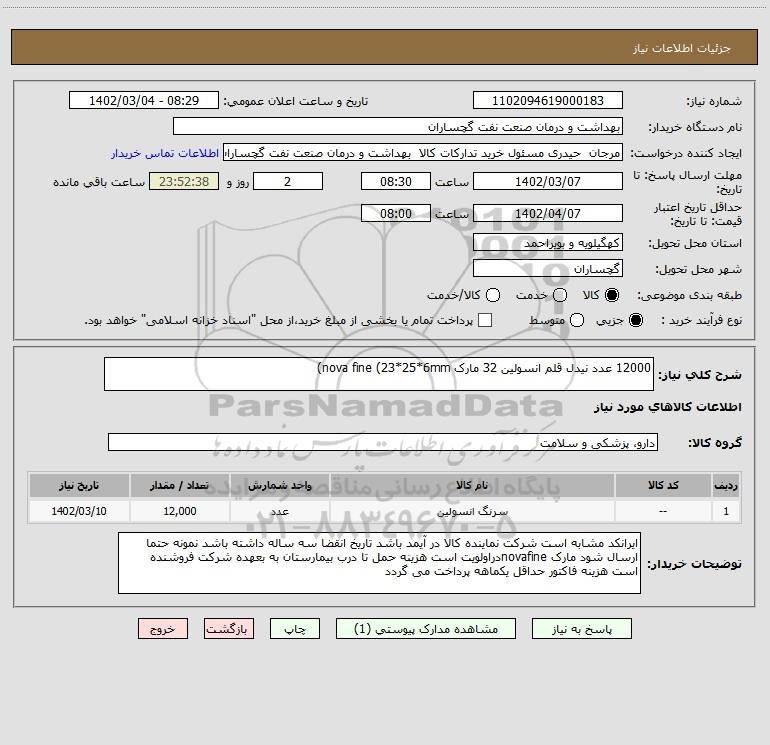 نام دستگاه خریدار:بهداشت و درمان صنعت نفت گچساران