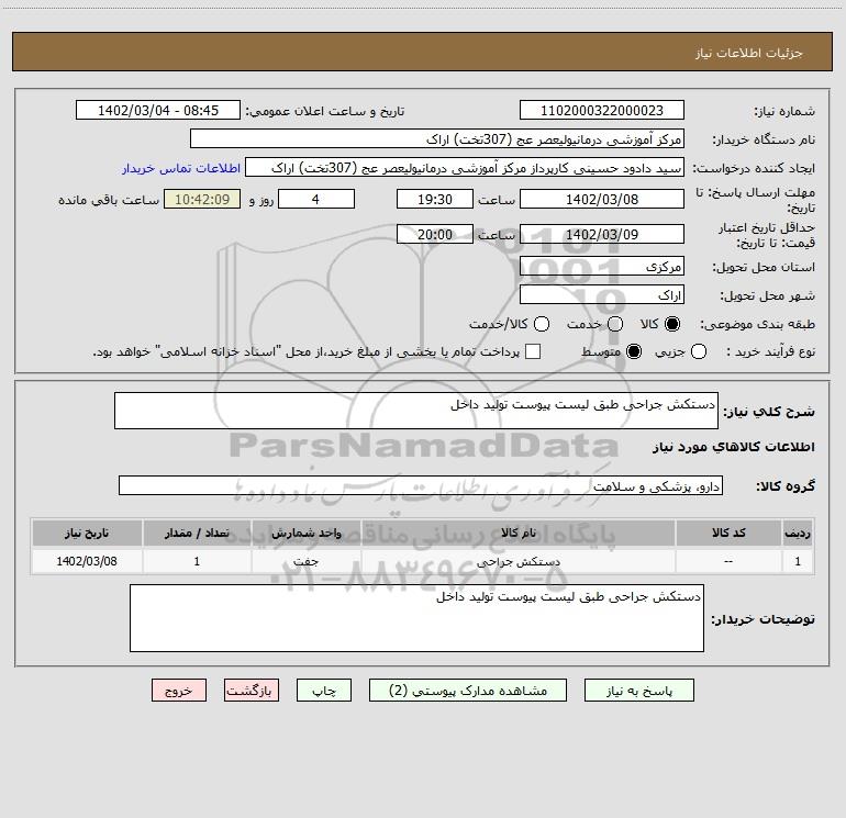 نام دستگاه خریدار:مرکز آموزشی درمانیولیعصر عج (307تخت) اراک