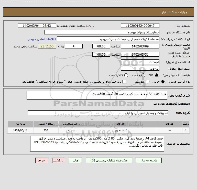 نام دستگاه خریدار:بیمارستان چمران بروجرد