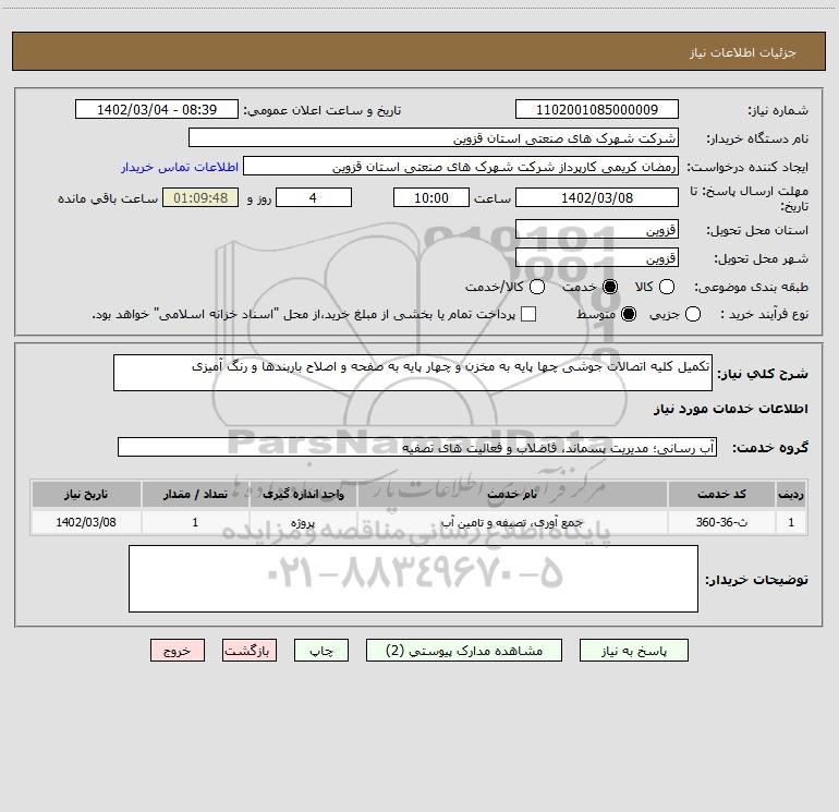 نام دستگاه خریدار:شرکت شهرک های صنعتی استان قزوین