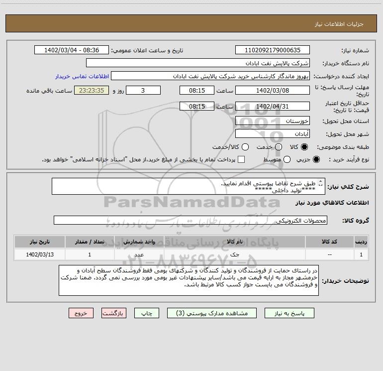نام دستگاه خریدار:شرکت پالایش نفت ابادان