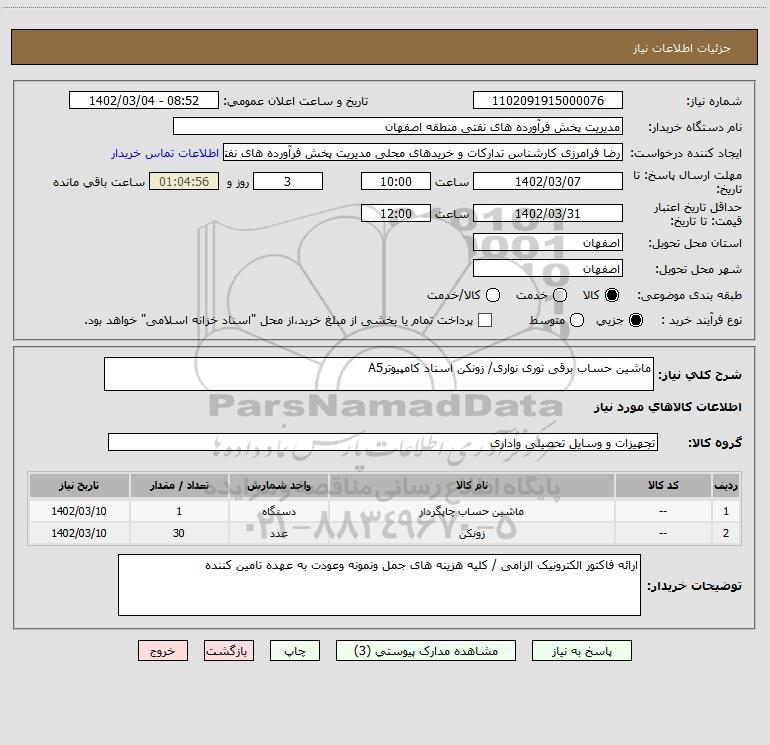 نام دستگاه خریدار:مدیریت پخش فرآورده های نفتی منطقه اصفهان