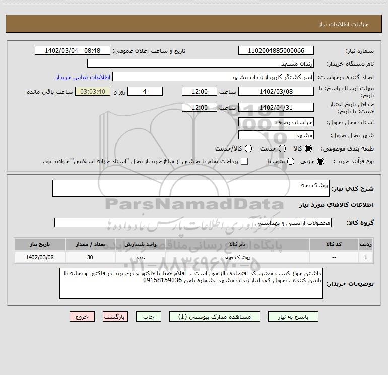| 1 | -- | پوشک بچه | عدد | 30 | 1402/03/08 |