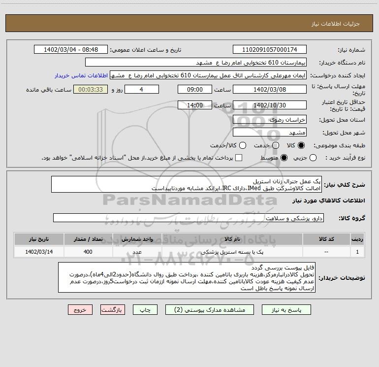 شرح کلی نیاز: پک عمل جنرال زنان استریل