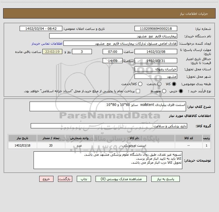 نام دستگاه خریدار:بیمارستان قایم عج مشهد