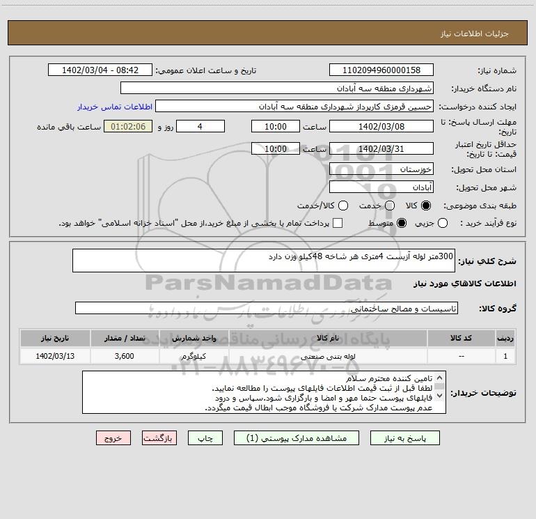 نام دستگاه خریدار:شهرداری منطقه سه آبادان