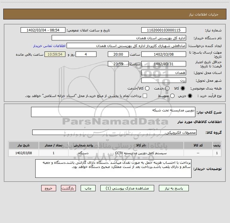 نام دستگاه خریدار:اداره کل بهزیستی استان همدان