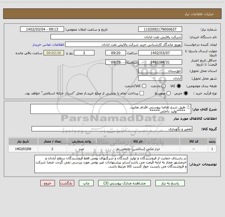 نام دستگاه خریدار:شرکت پالایش نفت ابادان