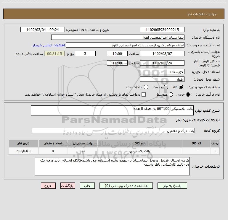 | 1 | -- | پالت پلاستیکی | عدد | 8 | 1402/03/11 |