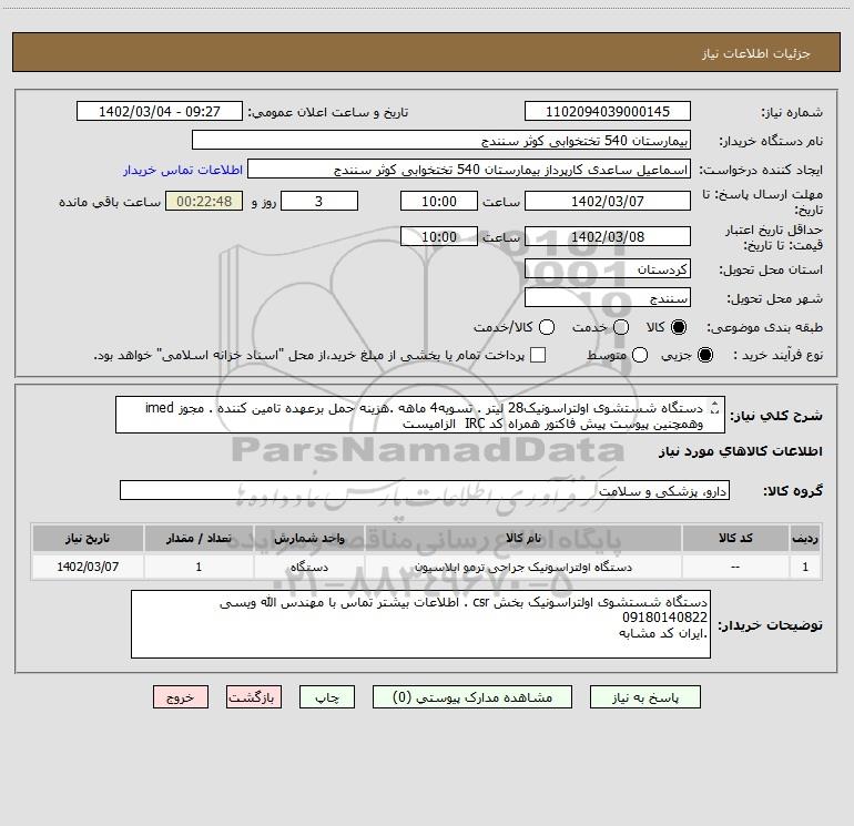 نام دستگاه خریدار:بیمارستان 540 تختخوابی کوثر سنندج