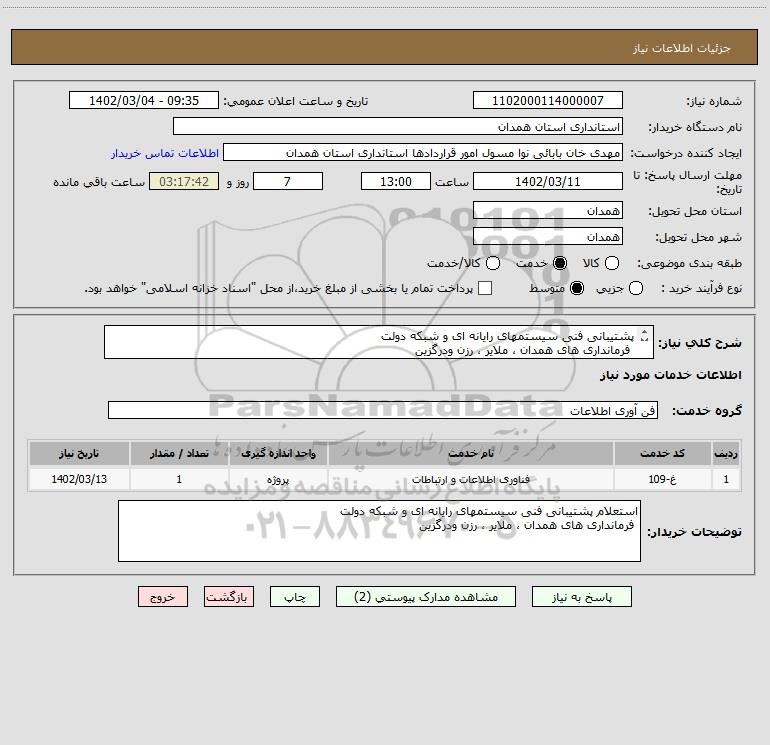 شرح کلی نیاز: پشتیبانی فنی سیستمهای رایانه ای و شبکه دولت