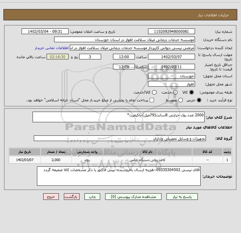 1 -- کاغذ رولی دستگاه تلکس رول 2,000 1402/03/07