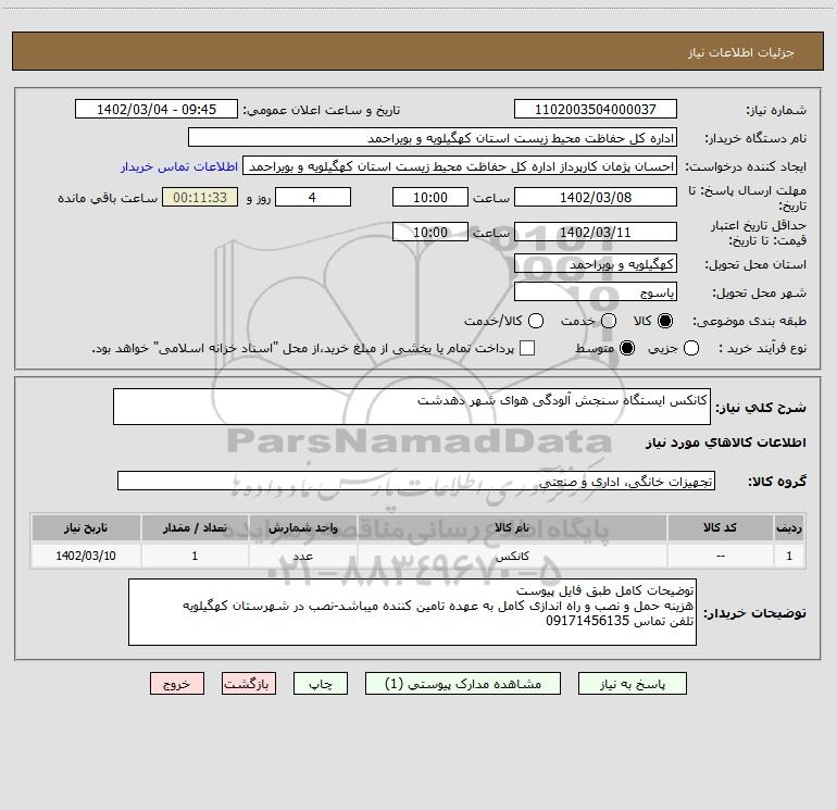 شرح کلی نیاز: کانکس ایستگاه سنجش آلودگی هوای شهر دهدشت