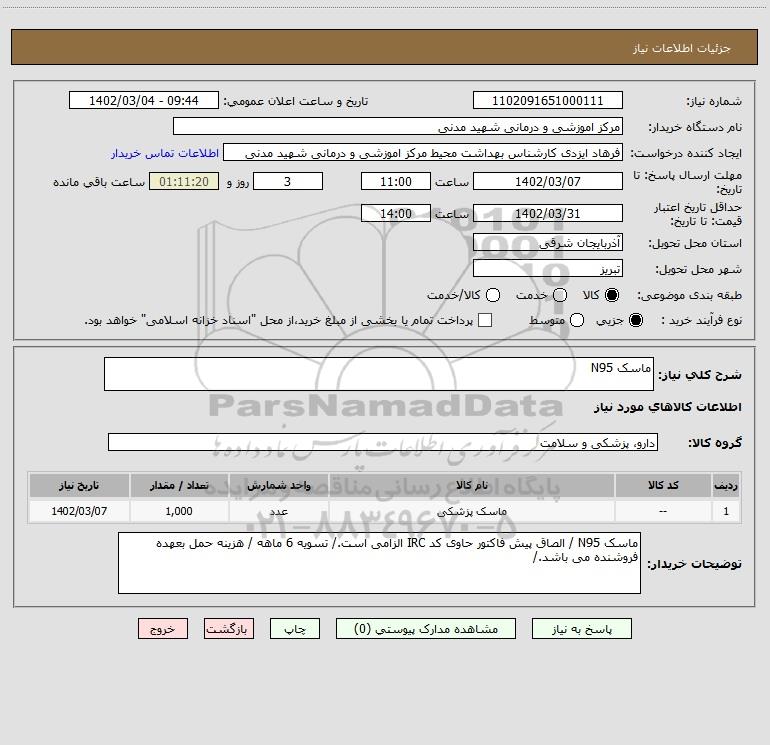 | 1 | -- | ماسک پزشکی | عدد | 1,000 | 1402/03/07 |