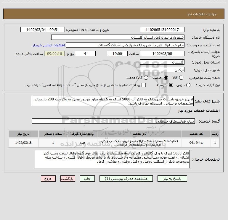 نام دستگاه خریدار:شهرداری بندرترکمن استان گلستان