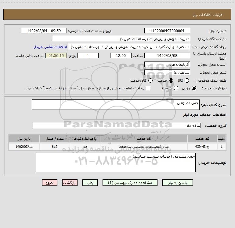نام دستگاه خریدار:مدیریت اموزش و پرورش شهرستان شاهین دژ