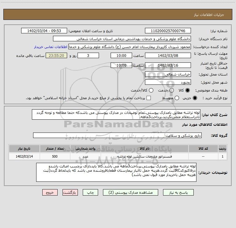 نام دستگاه خریدار:دانشگاه علوم پزشکی و خدمات بهداشتی درمانی استان خراسان شمالی