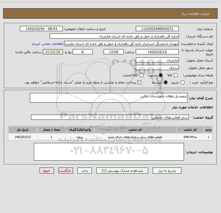 شرح کلی نیاز: ترمیم پل پلطان شهرستان تنکابن