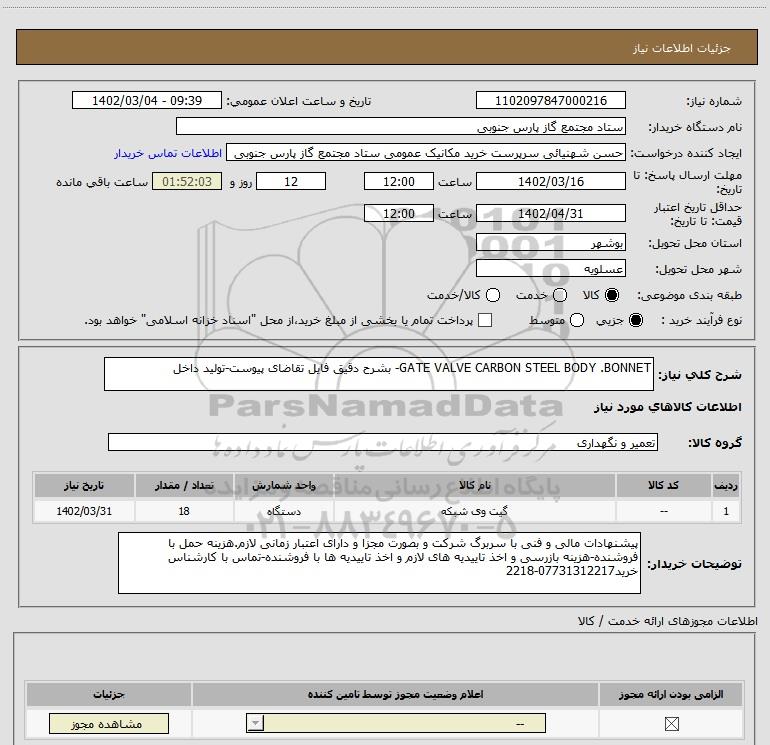 شرح کلی نیاز: GATE VALVE CARBON STEEL BODY .BONNET- بشرح دقیق فایل تقاضای پیوست-تولید داخل