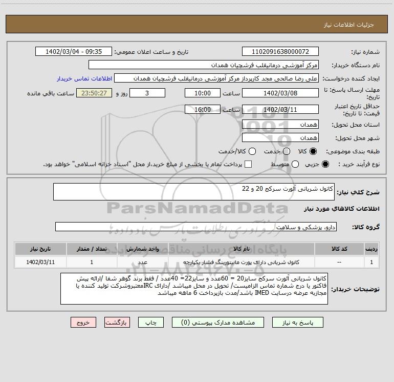 شرح کلی نیاز: کانول شریانی آئورت سرکج 20 و 22
