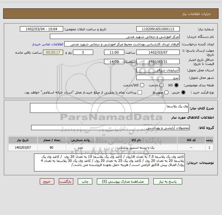 | 1 | -- | پک یا بسته استریل پزشکی | عدد | 80 | 1402/03/07 |