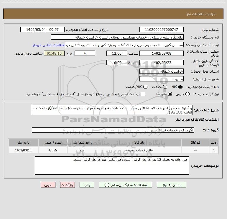 نام دستگاه خریدار:دانشگاه علوم پزشکی و خدمات بهداشتی درمانی استان خراسان شمالی