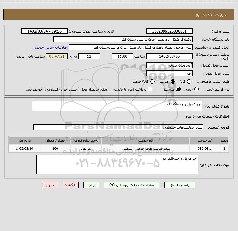 شرح کلی نیاز: اجرای پل و جدولگذاری