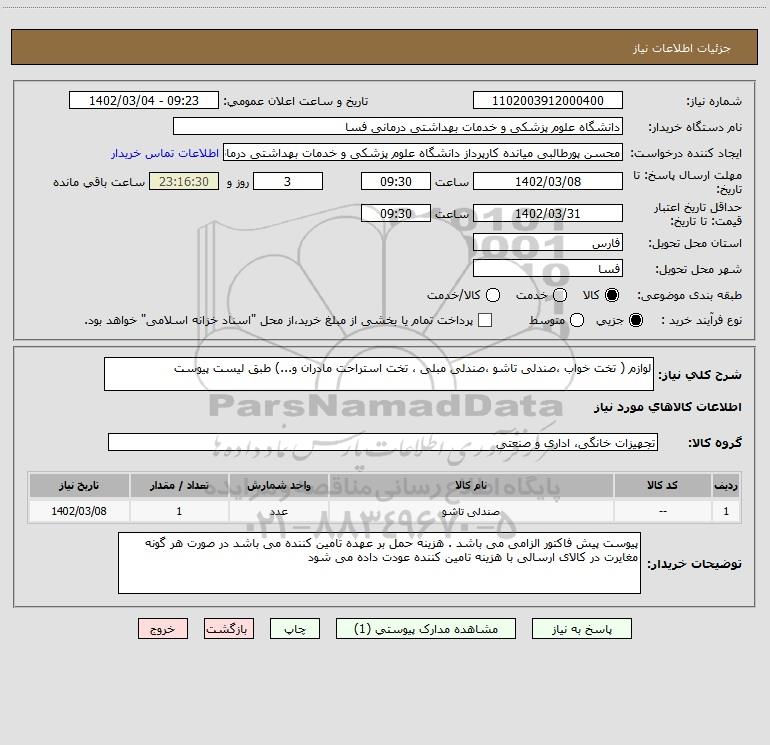 نام دستگاه خریدار:دانشگاه علوم پزشکی و خدمات بهداشتی درمانی فسا