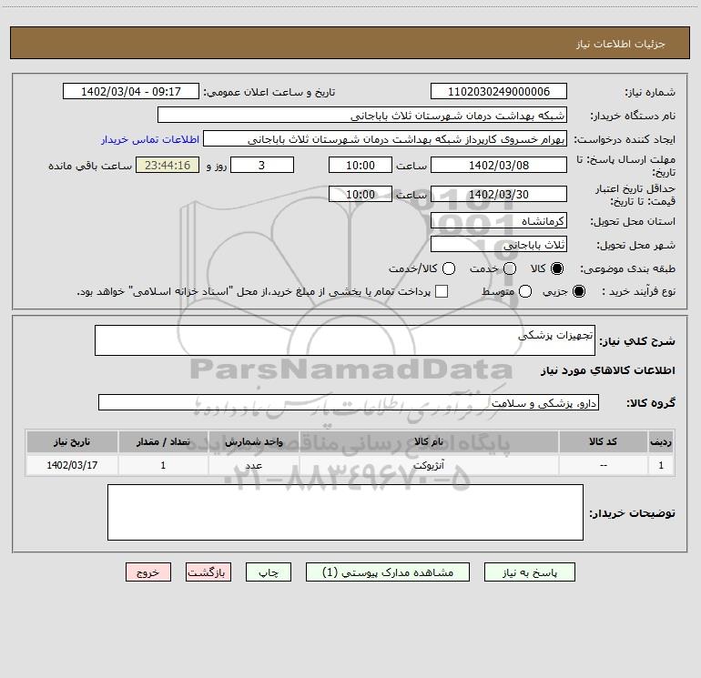 نام دستگاه خریدار:شبکه بهداشت درمان شهرستان ثلاث باباجانی