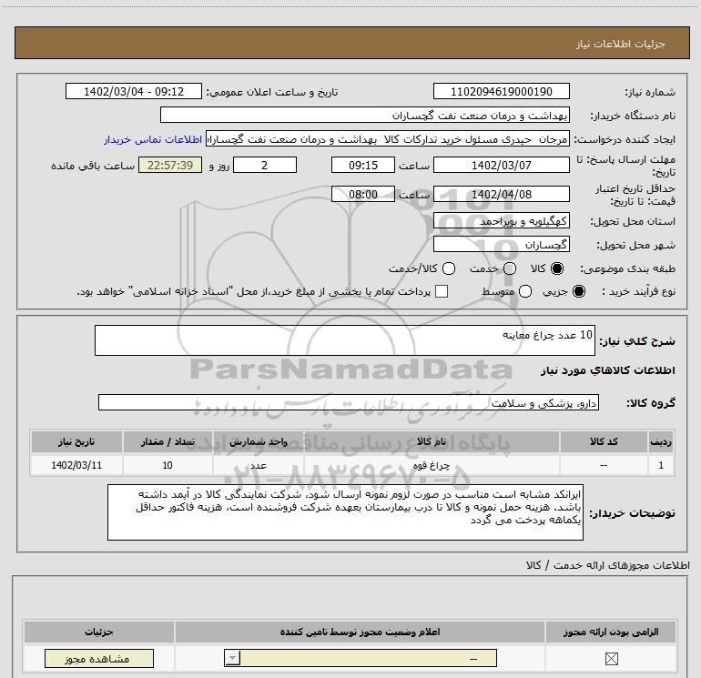 استعلام 10 عدد چراغ معاینه, استعلام 10 عدد چراغ معاینه