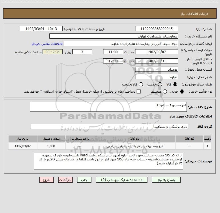 شرح کلی نیاز: تیغ بیستوری سایز15