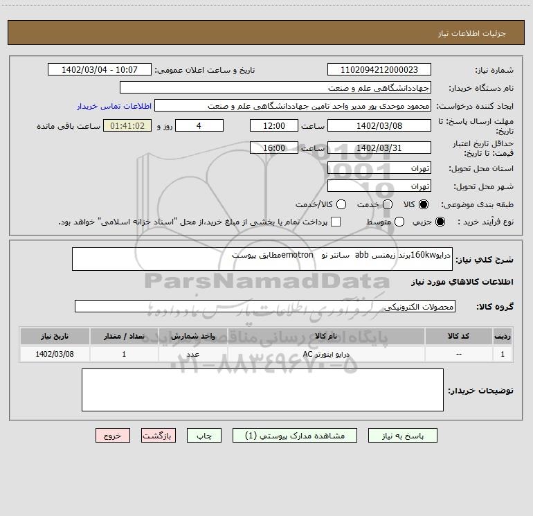 شرح کلی نیاز: درایو160kwبرند زیمنس abb سانتر نو emotronمطابق پیوست