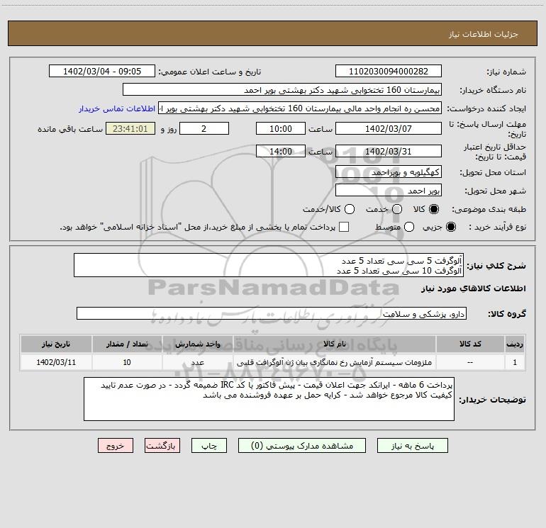 شرح کلی نیاز: آلوگرفت 5 سی سی تعداد 5 عدد