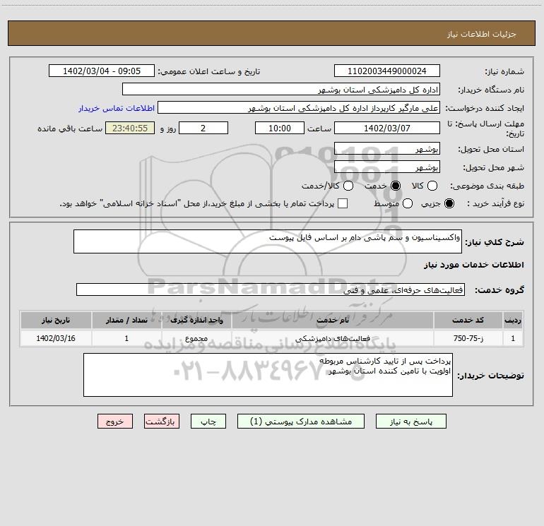 نام دستگاه خریدار:اداره کل دامپزشکی استان بوشهر
