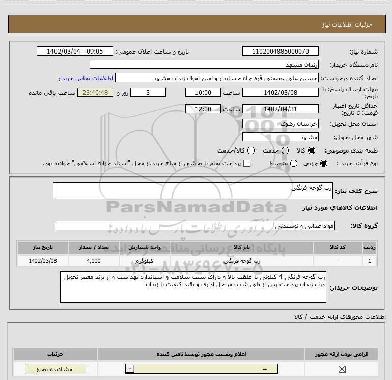 1 -- رب گوجه فرنگی کیلوگرم 4,000 1402/03/08