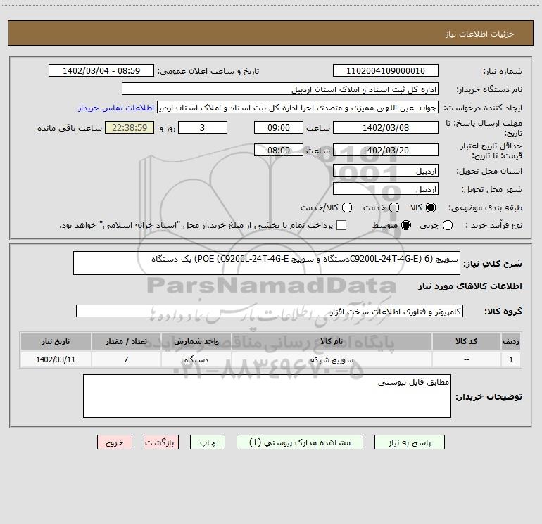 نام دستگاه خریدار:اداره کل ثبت اسناد و املاک استان اردبیل