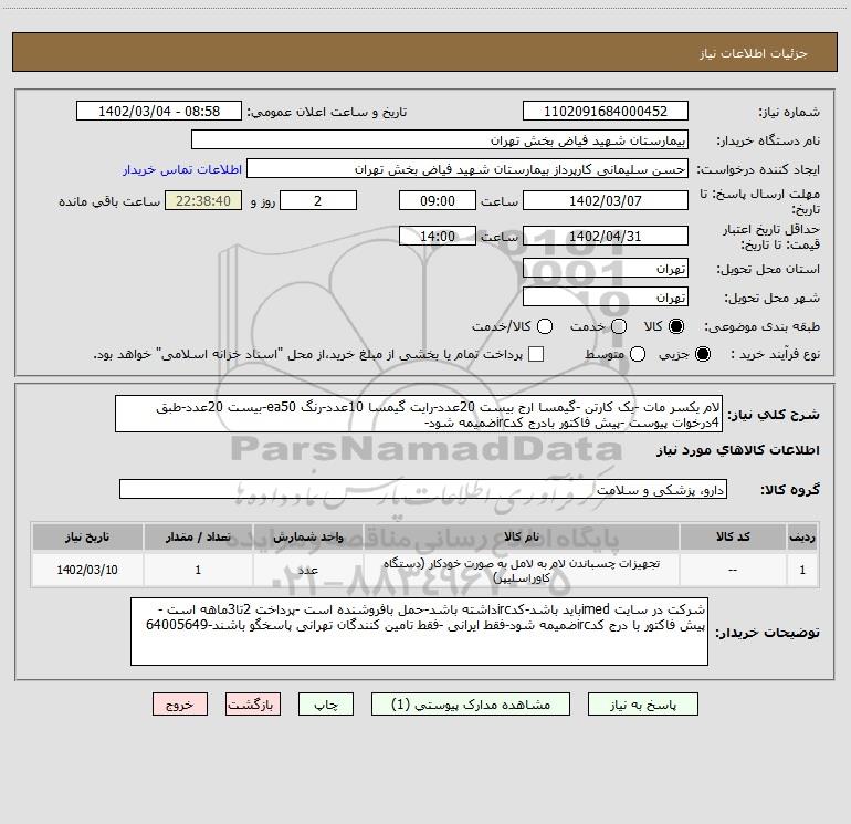 نام دستگاه خریدار:بیمارستان شهید فیاض بخش تهران