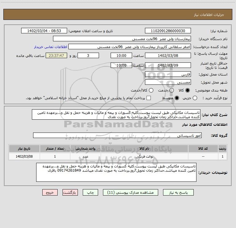 نام دستگاه خریدار:بیمارستان ولی عصر 96تخت ممسنی