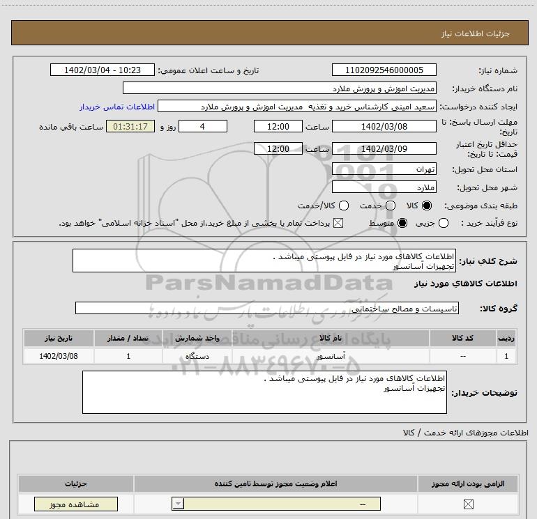 استعلام اطلاعات کالاهای مورد نیاز در فایل پیوستی میباشد . تجهیزات آسانسور, استعلام اطلاعات کالاهای مورد نیاز در فایل پیوستی میباشد . تجهیزات آسانسور