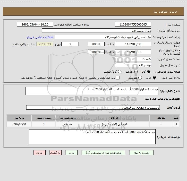 شرح کلی نیاز: دو دستگاه کولر 3500 آبسال و یکدستگاه کولر 7000 آبسال