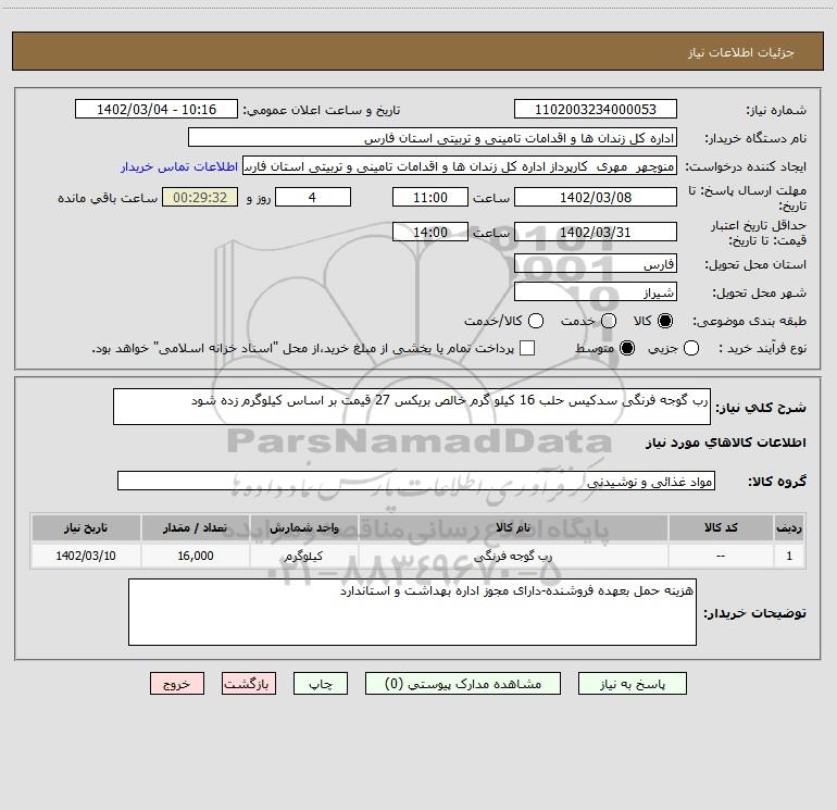| 1 | -- | رب گوجه فرنگی | کیلوگرم | 16,000 | 1402/03/10 |