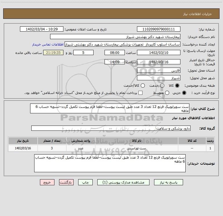استعلام ست سوپراپوبیک فرنچ 12 تعداد 3 عدد طبق لیست پیوست--لطفا فرم پیوست تکمیل گردد--تسویه حساب 6 ماهه, استعلام ست سوپراپوبیک فرنچ 12 تعداد 3 عدد طبق لیست پیوست--لطفا فرم پیوست تکمیل گردد--تسویه حساب 6 ماهه